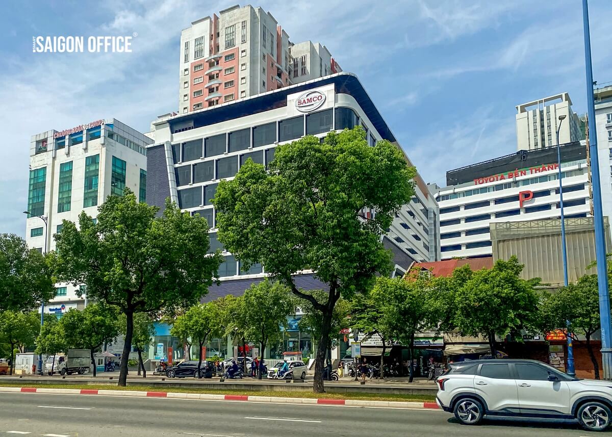 Samco Building belongs to a chain of offices for lease in District 1. With a scale of 1 basement and 10 floors, this is one of the buildings with a large rental area on a large floor, supplying the market. total area up to 5000m2, typical floor area is 800m2. Modern design, the front and surrounding campus is very spacious, convenient for cars in and out.