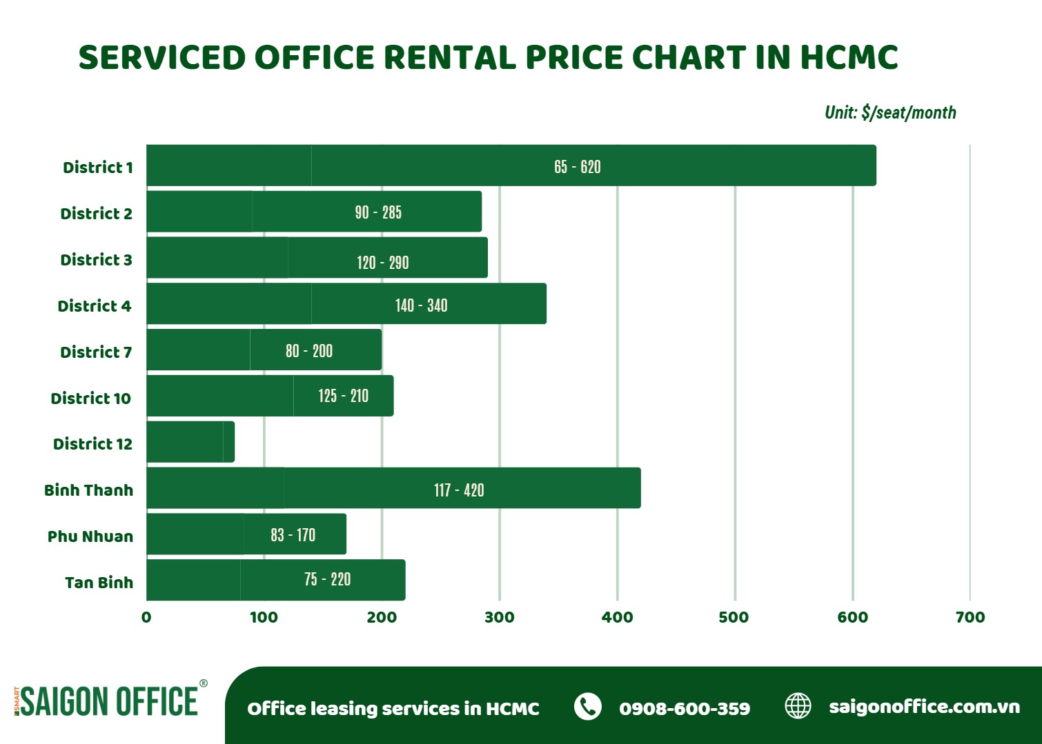Below is a reference price table for serviced offices in Ho Chi Minh City: