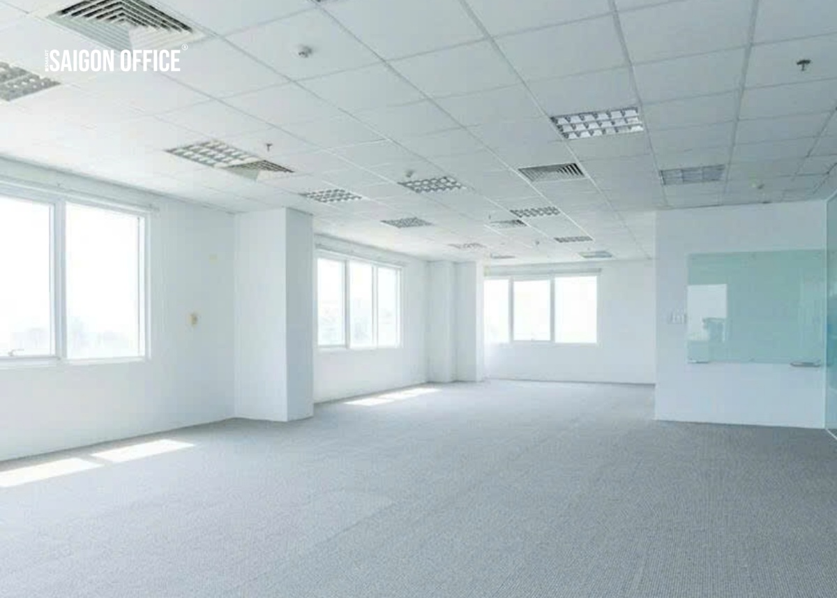 Ánh sáng tự nhiên được đưa vào thông qua hệ thống kính, giúp không gian không bị nặng nề dù nằm trong khu vực trung tâm. Khi kết hợp với chiều cao trần hợp lý và hệ thống kỹ thuật đồng bộ, tổng thể tạo nên một môi trường làm việc gọn gàng và ổn định – đúng với tính chất của một tòa nhà văn phòng đô thị.